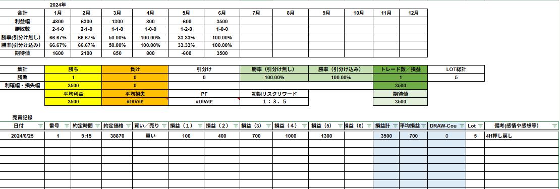 2024年6月25日9:15、38870円で買いエントリー。