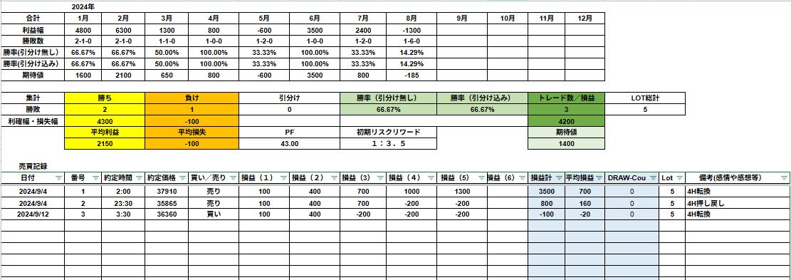 トレード日記|2024年9月12日 日経225 4H転換狙いでちょい負け