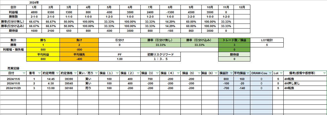 トレード日記|2024年11月29日 日経225 4H転換狙いは噛み合わず