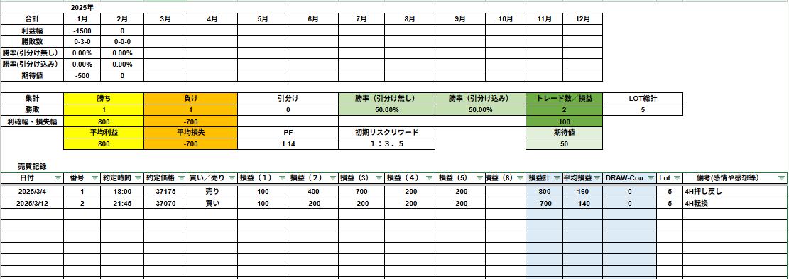 トレード日記|2025年3月12日 日経225 4H転換狙いでまさかの撃沈