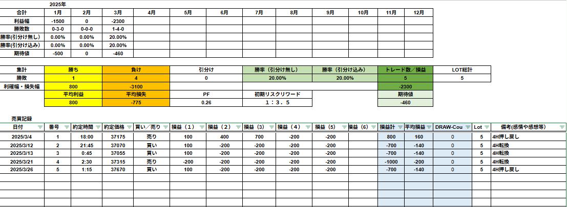 トレード日記|2025年3月26日 日経225 4H押し戻し狙いでまさかの4連敗