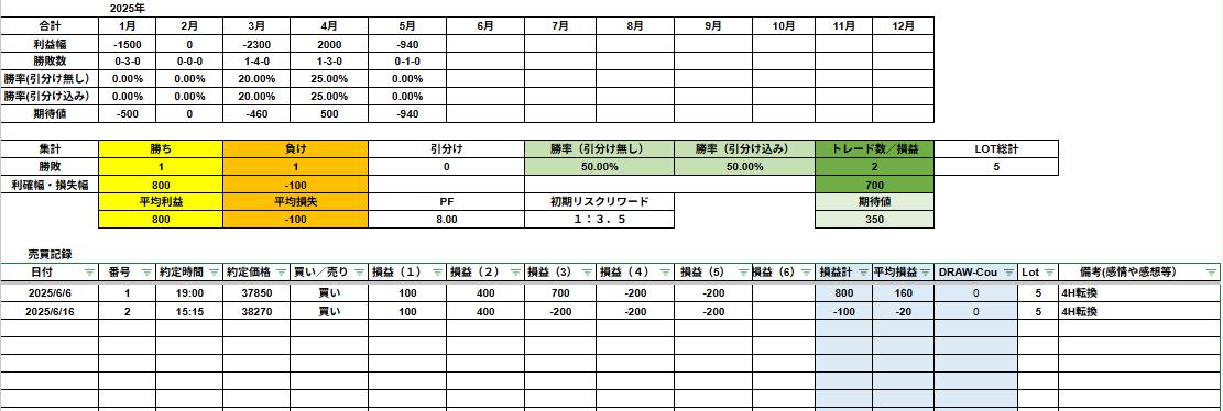 トレード日記|2025年6月16日 日経225 4H転換狙いでちょい負け