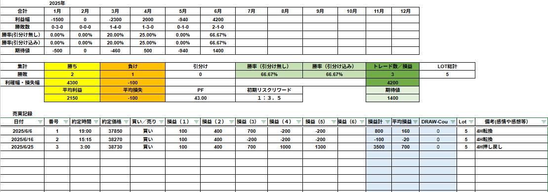 トレード日記|2025年6月25日 日経225 4H押し戻し狙いで完全勝利!