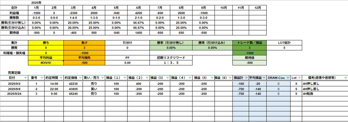 トレード日記|2025年9月24日 日経225 4H転換狙いで6連敗